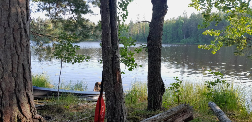 Es ist herrlich still hier. Zwar höre ich ab und zu Stimmen von einem ca. 1 km entfernten Ferienhaus. Aber sonst nichts. Nur das Rauschen der Blätter und Geplätscher von kleinen Wellen. Vielleicht aher ich morgen weier oder bleibe einen weiteren Tag.